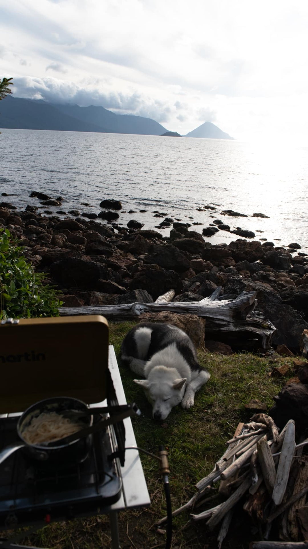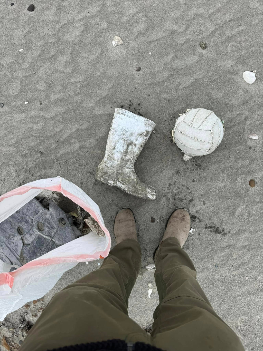 Straight off the overnight ferry, we explored northern beaches, searching for surf, though summer rarely delivers waves here. With no schedule and no plan, we ended up picking up a couple of bags of drift plastic. Among the finds was a tag fragment from South Korea stamped 거북 (Turtle) and 부산 (Busan…probably the port). Even the ocean’s trash comes with its own little stories.